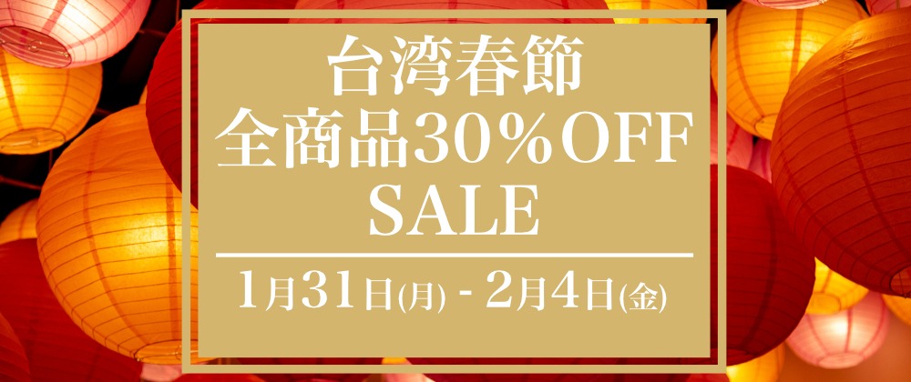 台湾の春節をお祝いして、1月31日(月)~2月4日(金)までの期間中すべての商品が30%OFFになるセールを実施中です!